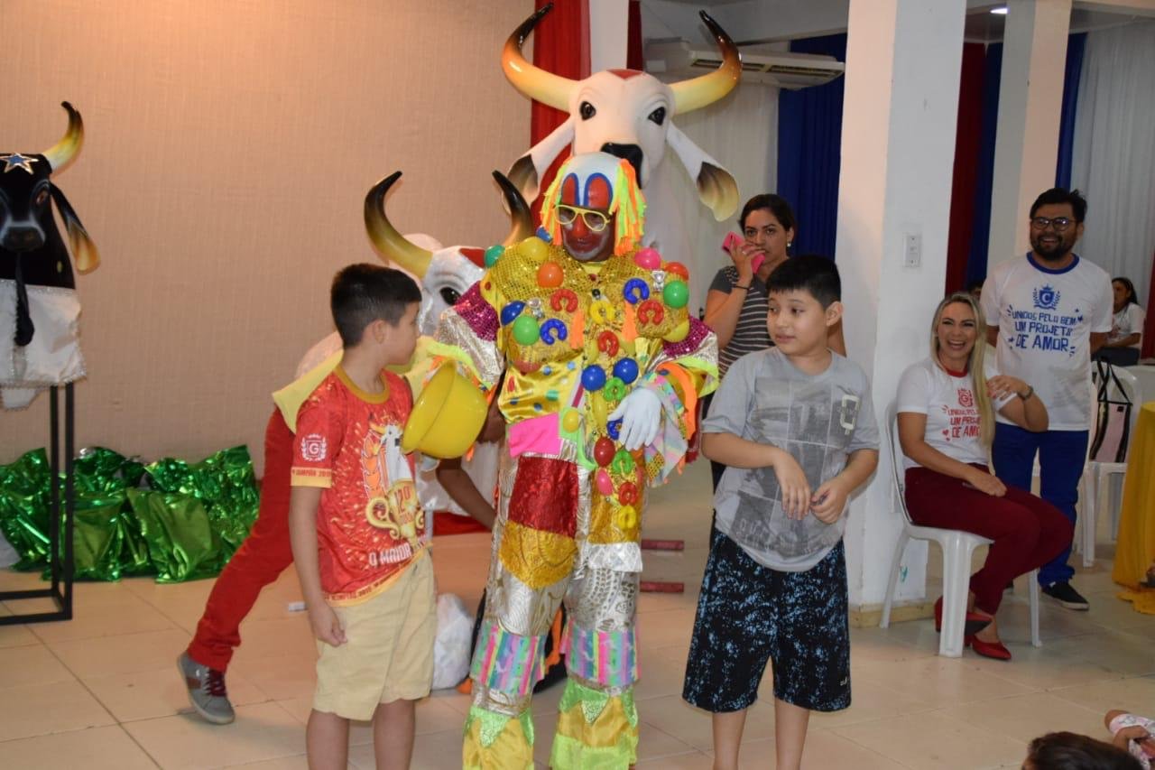 Em uma ação histórica de união entre as duas nações, os bois Garantido e Caprichoso, em parceria com a Prefeitura de Parintins, realizaram uma grande ação social que movimentou neste domingo, dia 13, crianças de uma casa de acolhida mantida por voluntários. A ideia da ação é das primeiras damas Lígia Lobato do boi Caprichoso e Yanezza Cardoso do boi Garantido, que uniram forças com a primeira dama do municipio Mayra Dias.