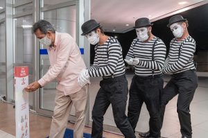 A campanha conta com três fases: a primeira, que entrou no ar no início da semana (15/11), mostra mímicos repetindo a ação de pessoas no dia a dia. Os artistas reprovam as atitudes erradas e parabenizam as que contribuem para a prevenção da Covid. O vídeo deixa claro que é possível conscientizar pelo exemplo.