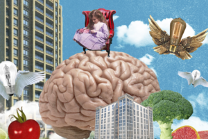 “Um sentimento, um descontentamento, um abraço na alma, algo que toque por dentro, antes de mais nada”, coloca ela. “E a colagem surgiu como recurso lá atrás mesmo, com George Braques e Picasso, por exemplo, ambos do movimento cubista. Mas foi na pop-art que ela tomou forma”, alega Caminha.