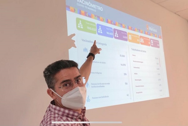 O prefeito de Manaus, David Almeida, comemorou, junto ao grupo de vacinadores, o marco das 100 mil doses aplicadas de…